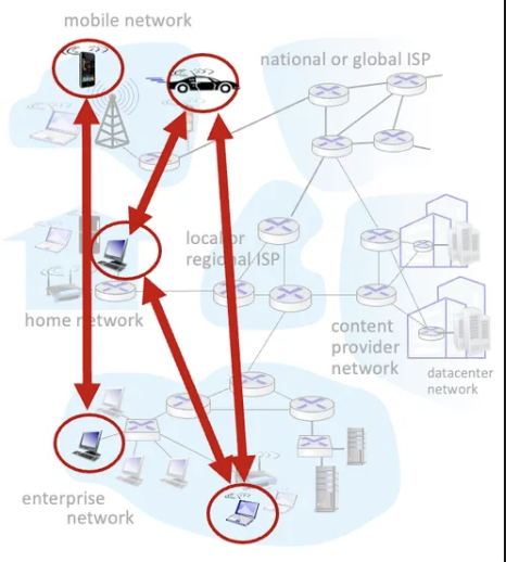 P2P architecture은, 항상 켜져있는 infrastructure 서버에 최소한으로 의존하고, 간헐적으로 연결되는 호스트 쌍(peer)이 서로 직접 통신하는 방식이다.