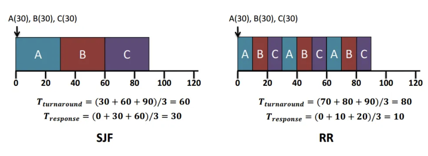 - 이 때 우리의 가정에 한해서는 가장 최적의 turnaround time을 보여준다.