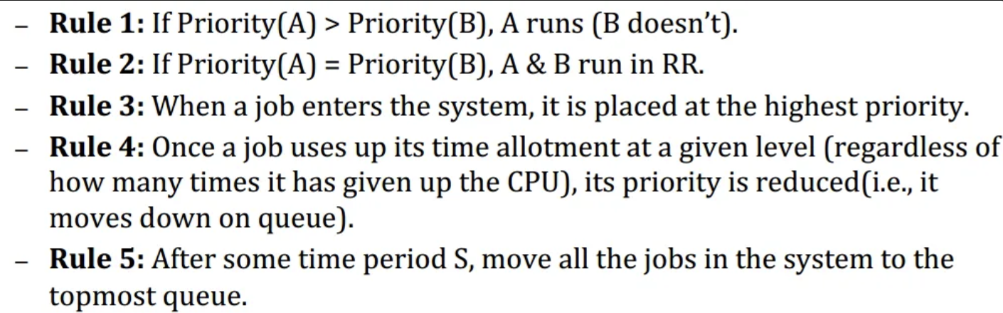 이를 적용한 MLFQ의 장점: Process의 Cpu usage를 선험적으로 알아야할 필요가 없다는 것이다.