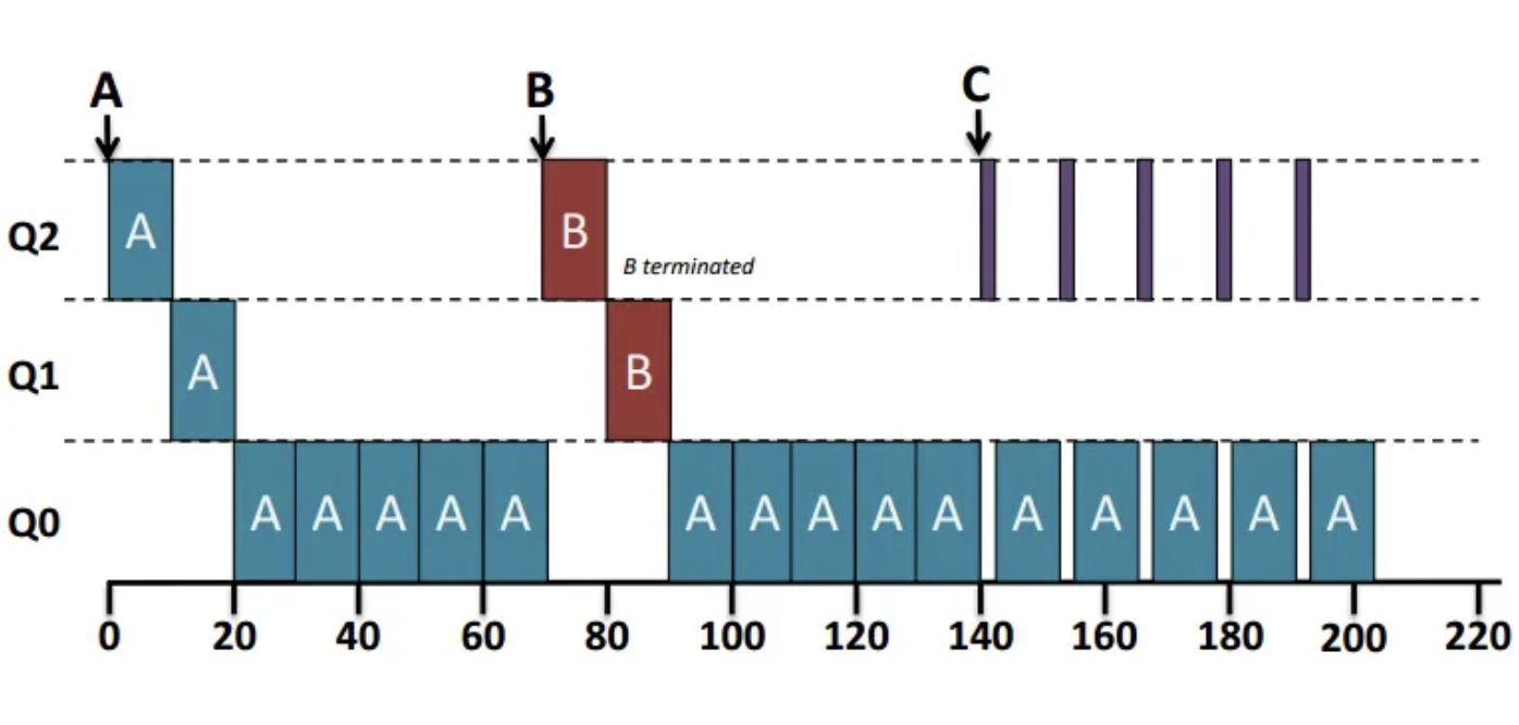 5. Some time period S가 지나면, 모든 job들을 topmost queue로 옮김