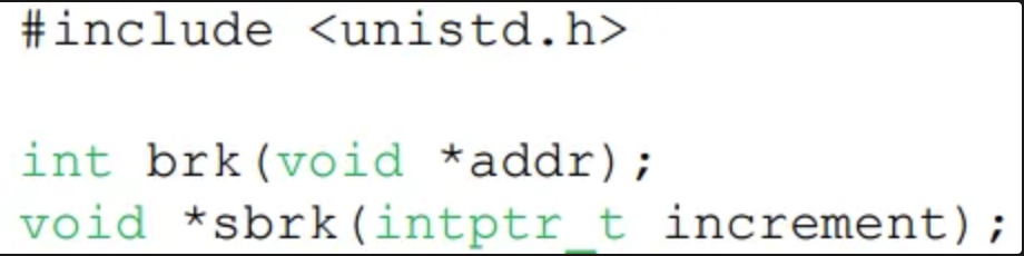 - sbrk 는 현재 끝 주소를 기준으로 increment만큼 공간을 증가시킴