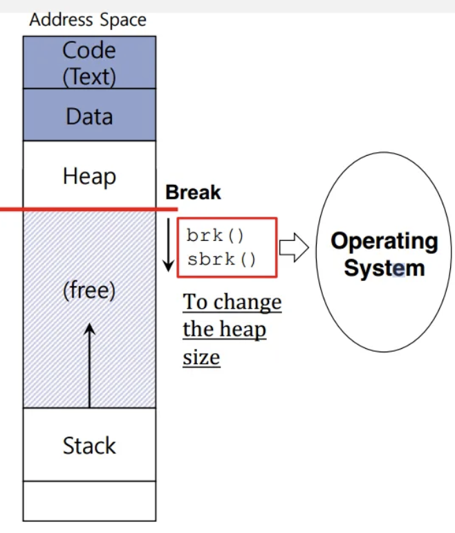 - 만약 heap 공간이 부족하다면, OS에게 heap 확장해도 되는지 물어본다